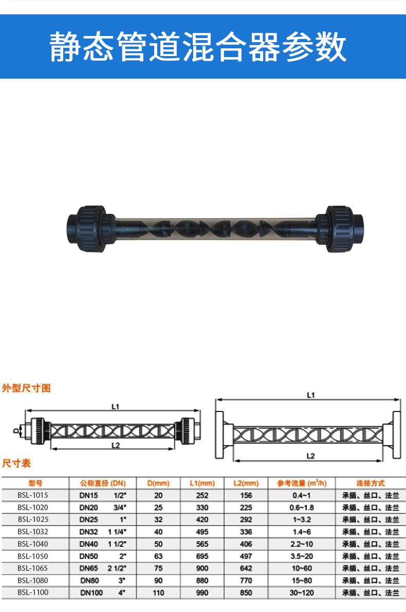 管道混合器加药混合器UPVC管道气液混合静态混合器